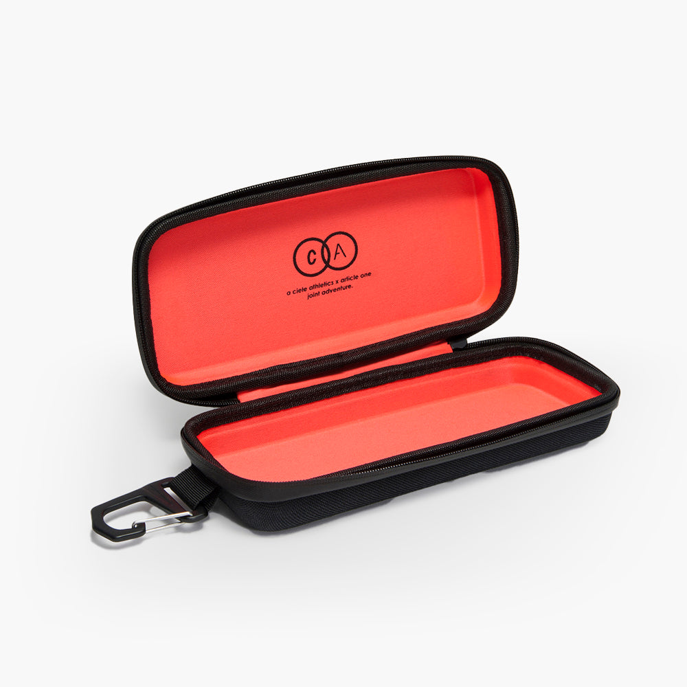 spring hinges allow for give and bounce back in case of rough wear. every pair of the GTGlass is delivered in an impact resistant molded carry case wrapped in recycled PET fabric with clip and ciele detailing. also included, our custom retainer strap for an extra secure fit for off road runs and added reflective detailing for night runs.